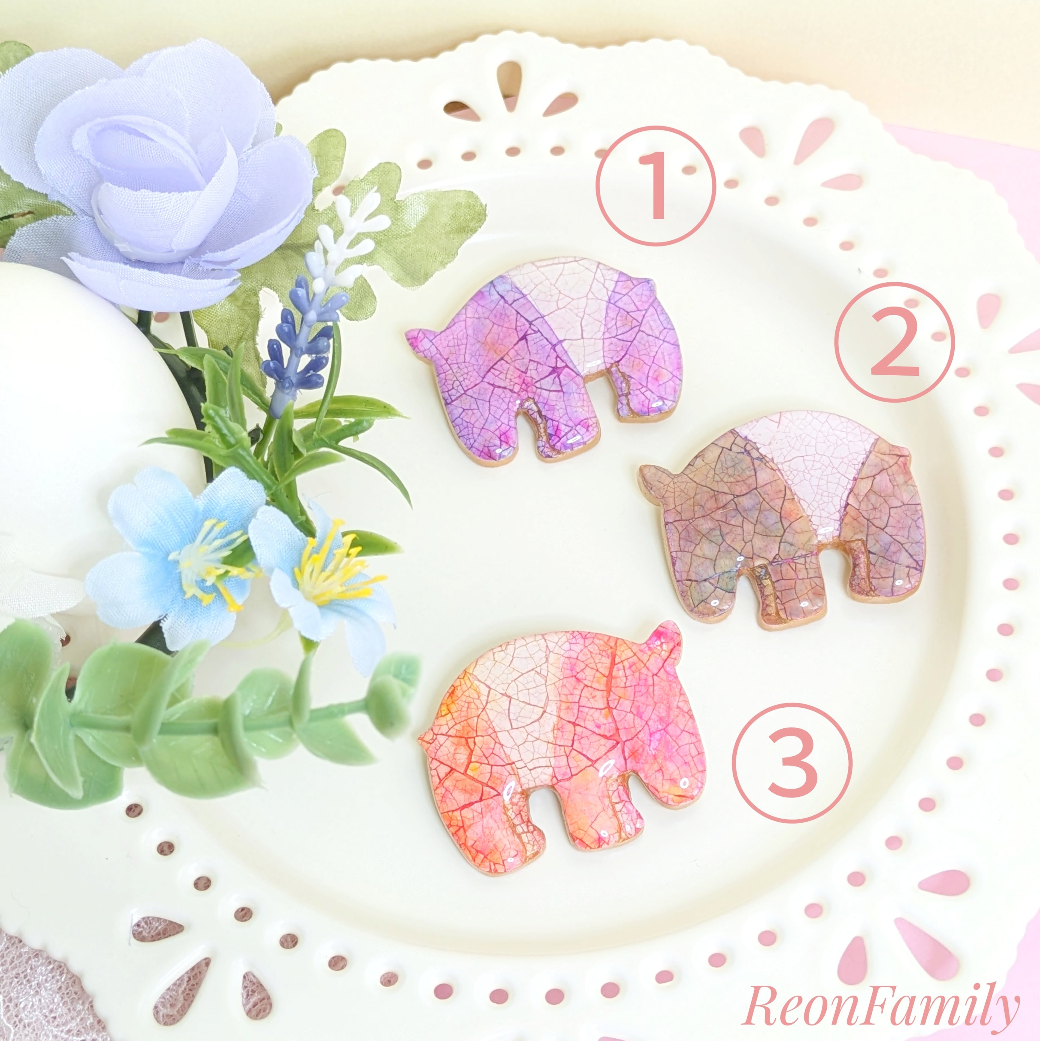 また、樹脂(レジン)は経年劣化いたします。その変化も作品の味わいとしてお楽しみいただきますようお願いいたします。